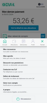 Depuis l'application, vous pouvez aussi gérer votre compte : donner délégation à votre conjoint, modifier votre mot de passe…