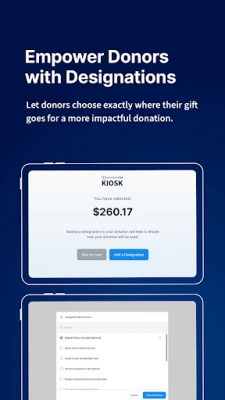 - Enable donation designations in Live Kiosk, empowering supporters to direct their donation to a specific area of need.