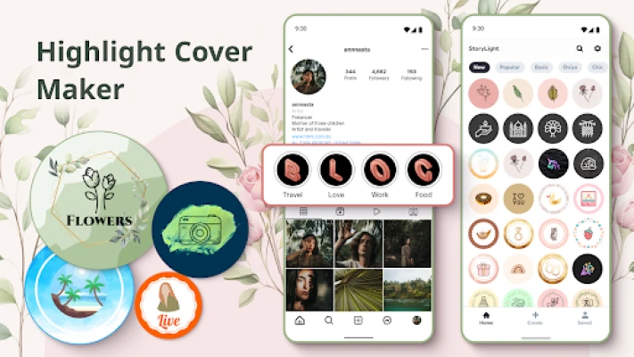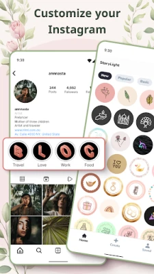 ⭐ Easy Customization: StoryLight Highlight Cover Maker lets you customize all templates easily. Just tap on colors, borders, icons, stickers, and texts to enlarge or edit them.