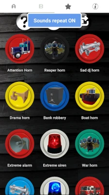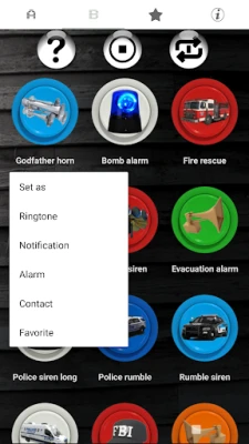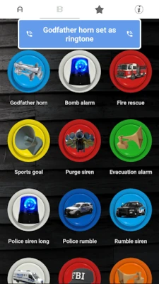 Horns and sirens features a collection of loud high quality real siren and horn sound effects in a sound board format. You can customize horns and sirens by saving your favorites to a custom board so you will always have loud sounds at the tap of a button. You can also save your favorite as a ringtone, notification sound, alarm sound or to a specific person calling.
