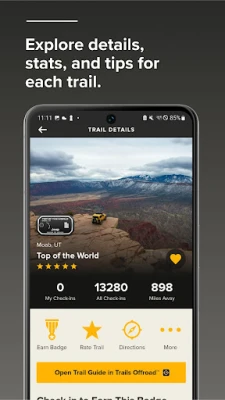 ▪Earn Trail Points and ranks within the Jeep Badge of Honor community, plus special Hard Badges to put on your Jeep brand vehicle