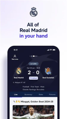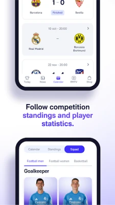 New Real Madrid App, the place where you can find all the football and basketball information with match pre-match coverage, live scores, post-match coverage, standings, exclusive news, and much more!