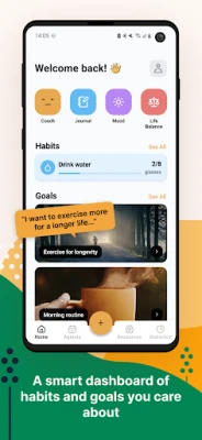 Small actions everyday create life changing behaviors. Our mental health tracker and self care journal helps you with goal setting and achieving personal growth! Remente acts as your life coach and provides a bunch of self help tools to feel better and glow up and achieve self improvement, healthy habits and well being.