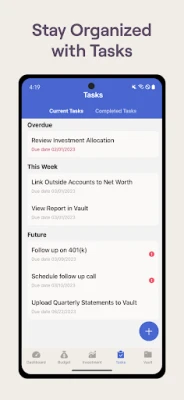 RightCapital provides a clear, complete, and simple way for you to view and track your financial life and connect with your financial advisor. The RightCapital app allows your financial advisor to give you the ability to see all of your financial accounts and investments in one place at any time, link accounts, track expenses in the budget module, share documents in the secure vault, and receive notifications on upcoming tasks. It can substantially improve communication between you and your financial advisor.